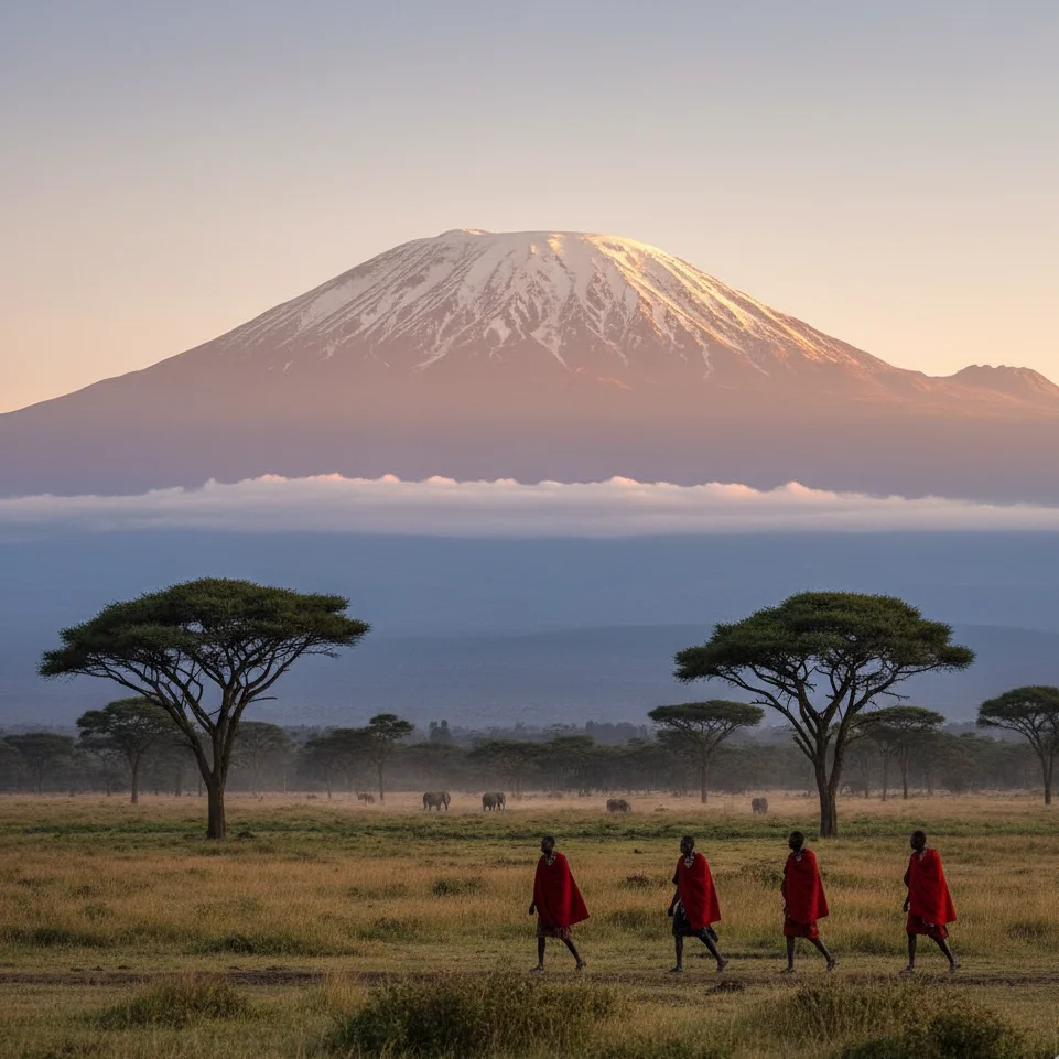 Mount Kilimanjaro, the tallest free-standing mountain in the world, towers above Tanzania with its snow-capped summit and dramatic volcanic cones. Its unique ecosystem and challenging climbs make it a symbol of adventure and natural wonder.