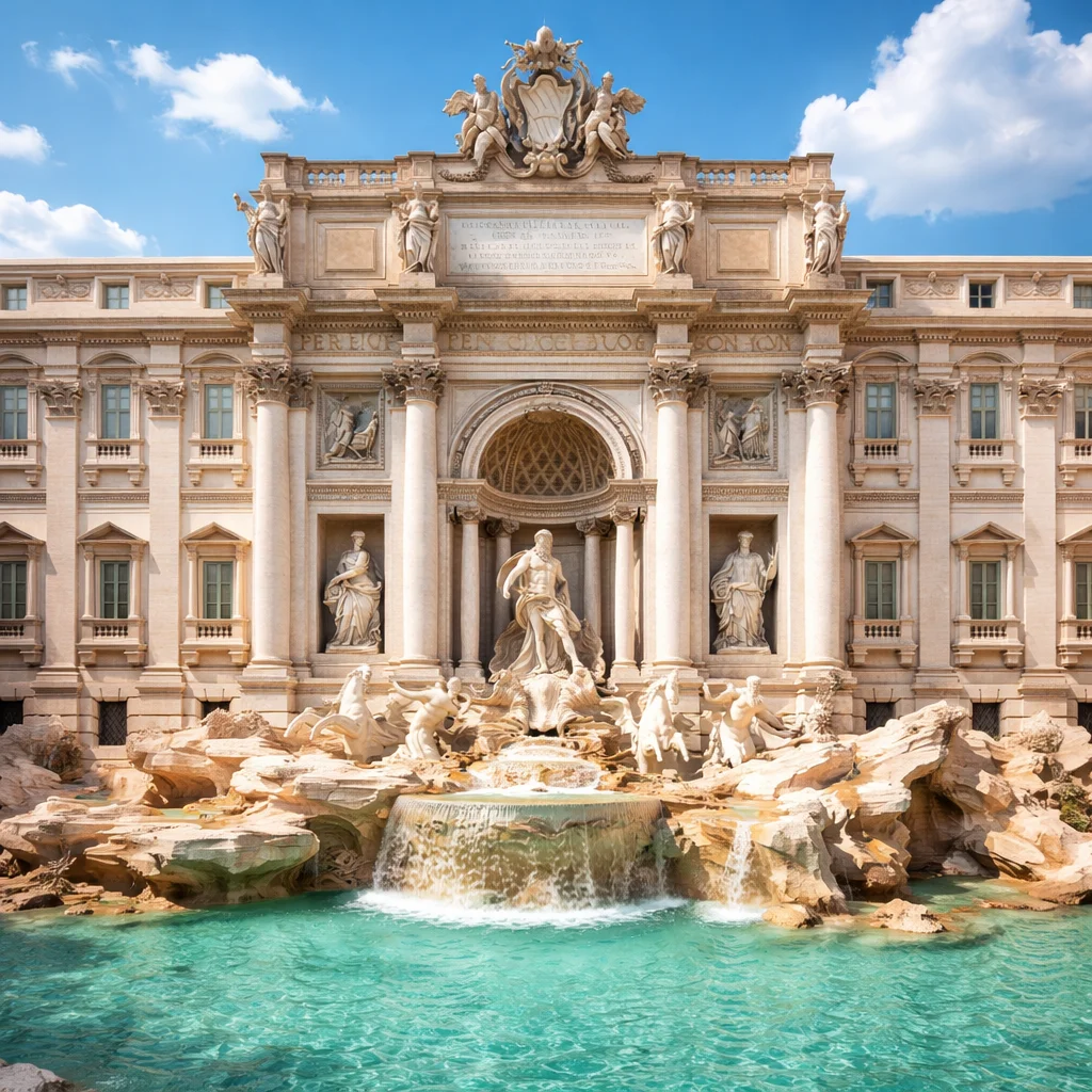 The Trevi Fountain stands as the most famous Baroque fountain in the world, dominating a small square in Rome with its thundering waters. Visitors flock to throw coins into its basin to ensure their return to the Eternal City. However, this masterpiece by Nicola Salvi hides centuries of history, drama, and engineering marvels behind its travertine facade. For instance, the central figure is often mistaken for the wrong god, and a specific stone vase exists solely to spite a complaining shopkeeper. Prepare to make a wish at the jewel of Rome.