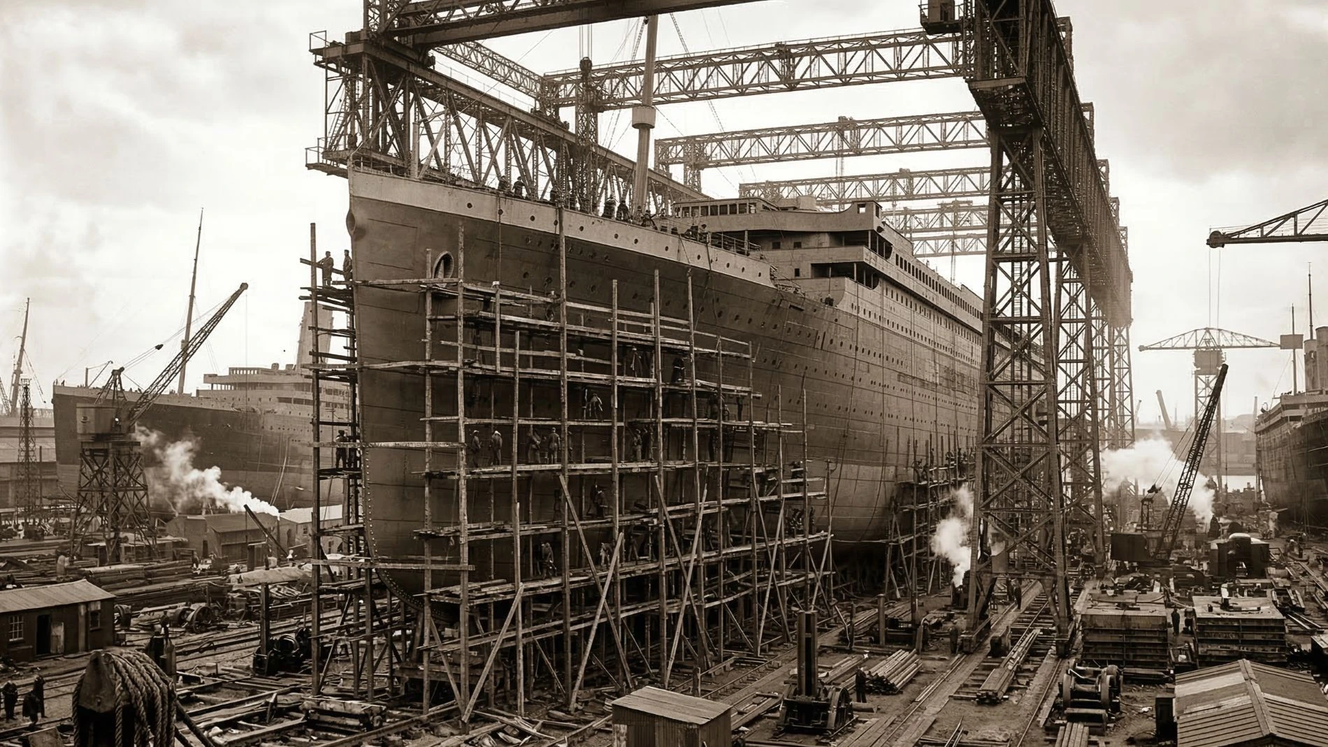 The sheer size of the workforce was astounding. It took around three thousand dedicated workers at the Harland and Wolff shipyard in Belfast several years just to build the massive steel hull of the ship.
