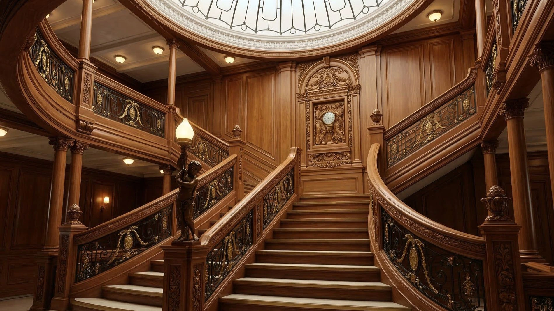 The Grand Staircase was an absolute masterpiece of craftsmanship. Built from solid oak and adorned with elaborate wrought-iron grilles and a stunning glass dome that let in natural light, it was designed specifically to allow high-society passengers to make a grand, elegant entrance down to dinner.